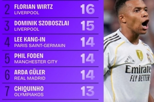 下一篇: 本赛季欧冠射门次数榜:姆巴佩居首,格林伍德次席,哈兰德第三