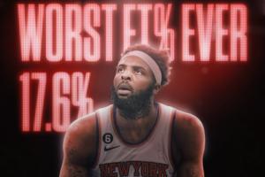 米切尔·罗宾逊本赛季总计17罚3中,罚球命中率17.6%