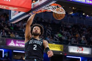活塞主将康宁汉姆得分串联一把抓,他上半场打了17分半钟,9投5中(三分3中2)、罚球3中3,拿到15分4篮板7助攻1盖帽,有3次失误,正负值+13!