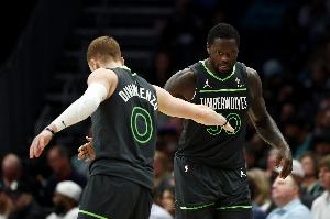 GIF-兰德尔和迪文岑佐反击二人转,前者单臂暴扣