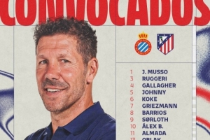 前锋:7-格列兹曼、9-索尔洛特、10-巴埃纳、19-阿尔瓦雷斯、20-朱利亚诺-西蒙尼、22-拉斯帕多里、23-卡洛斯-马丁
