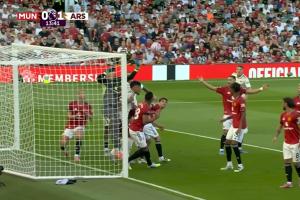 体育资讯08月17日讯 英超首轮焦点战,曼联对阵阿森纳。第13分钟,赖斯角球开出,门前门将巴因德尔移动受限,卡拉菲奥里抢到机会近距离头球破门,阿森纳先进一球,1-0领先曼联。