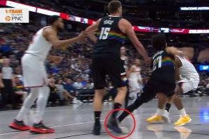 次节末,掘金后卫穆雷防守沉退时左脚不慎踩到队友约基奇,左脚踝向外侧翻连续扭伤。随后穆雷捂着脚踝痛苦倒地,现已回到更衣室。