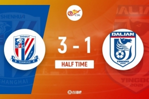 伤停补时7分钟。上半场比赛结束,上海申花3-1大连英博。