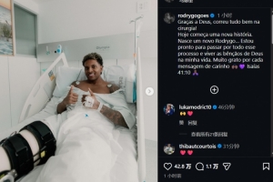 体育资讯3月10日讯 皇马边锋罗德里戈成功接受了手术,他在社交媒体上发表了自己的感受。