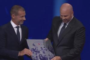 欧足联主席切费林登台为切尔西俱乐部颁发特别奖项,切尔西是唯一包揽现今欧洲男子俱乐部全部顶级赛事冠军(欧冠、欧联、欧协联、欧洲超级杯)及现已停办的欧洲优胜者杯的球队。