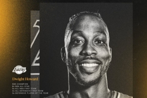 湖人官方发出海报祝贺霍华德:“冠军得主、防守核心、8次全明星,现在——名人堂球员!”