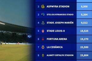 体育资讯9月18日讯 德国转会市场列出了本赛季欧冠容量最小球场排名,卡拉巴赫主场5800人居首,博德闪耀主场8500人次席。