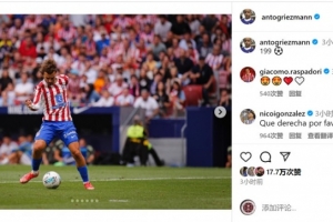 格列兹曼各赛事为马竞攻入199球,职业生涯至今在西甲比赛中打进199球,仅差1球达成200球里程碑,赛后他在社交媒体上晒出比赛照片,配文:“199⚽️”