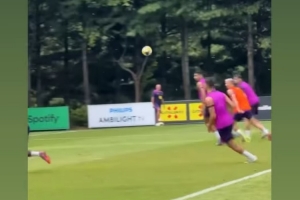 亚马尔在队内训练中为拉什福德送出传球,后者凌空破门,亚马尔社媒转发视频。