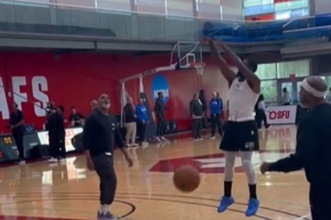 体育资讯10月1日讯 记者Tim MacMahon报道,独行侠全队目前正在温哥华集训,他也晒出了欧文在训练当中的片段。