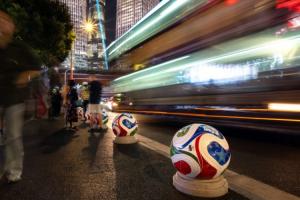 近日,2026年FIFA世界杯官方比赛用球“三重浪”来到上海东方明珠广播电视塔,开启限时亮相活动。